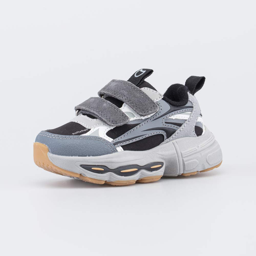 144281-12 чер-сер полуботинки ясельная, малодетская Комбинирован.